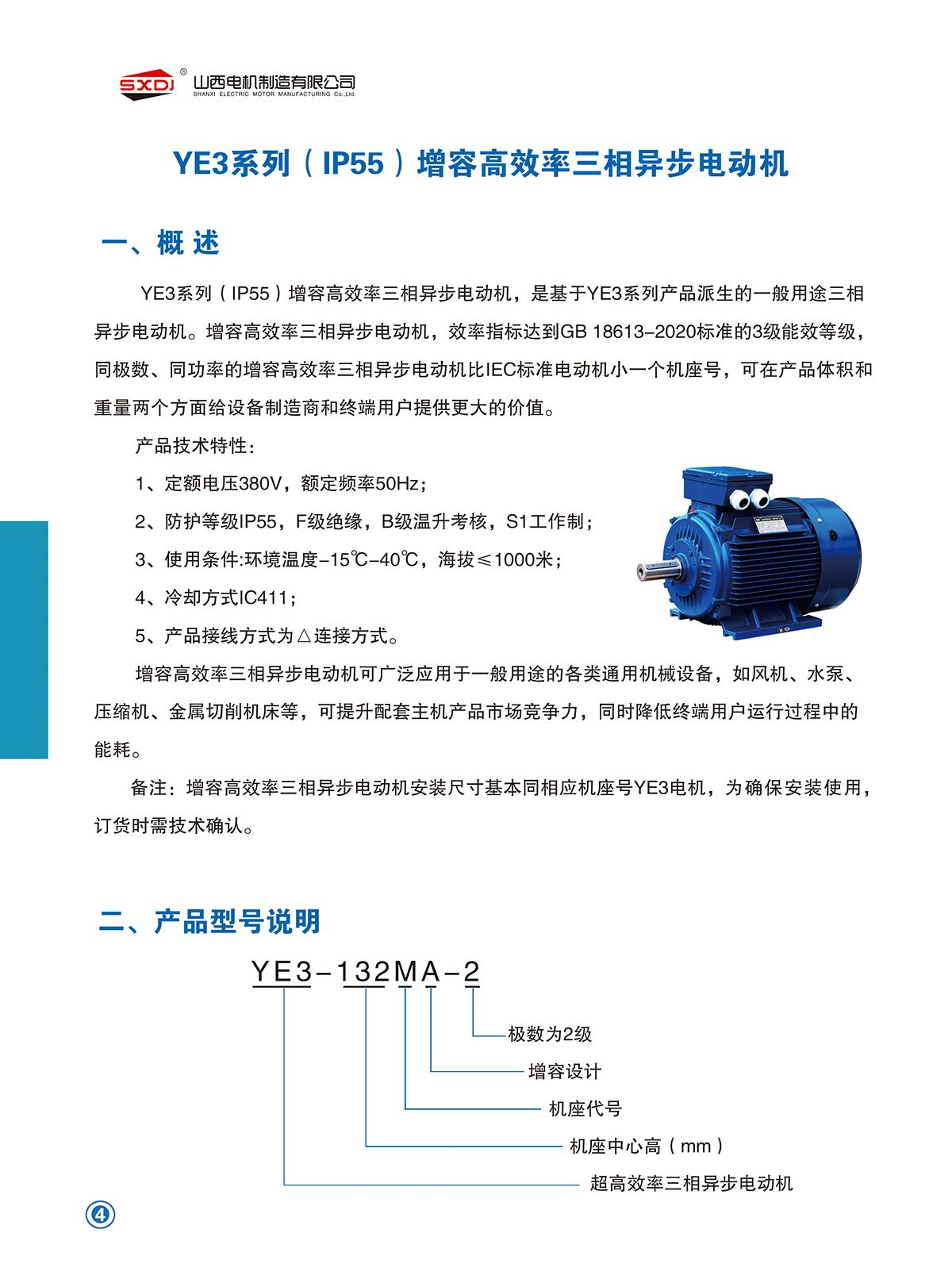 封閉式自扇冷卻籠型轉(zhuǎn)子高效三相異步電動機(jī),設(shè)計(jì)符合IEC、GB等相關(guān)標(biāo)準(zhǔn)要求。YE3系列(IP55)增容高效率三相異步電動機(jī),效率指標(biāo)達(dá)到GB18613-2020《電動機(jī)能效限定值及能效等級》中3級能效水平。